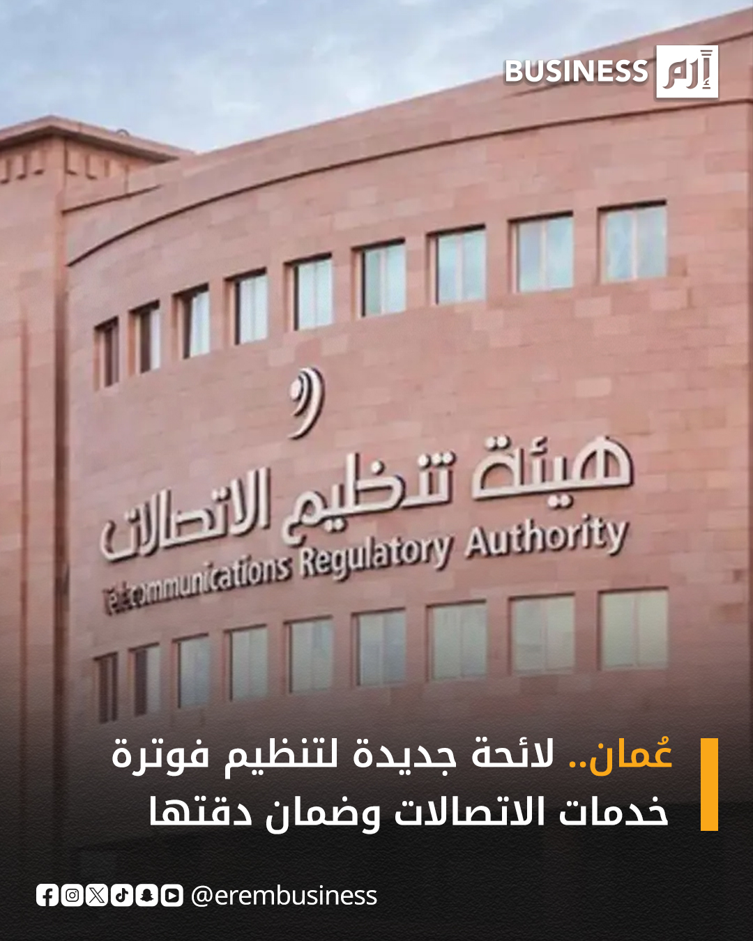 أصدرت هيئة تنظيم الاتصالات في سلطنة عُمان قراراً بإصدار لائحة أنظمة الفوترة لتنظيم الفوترة لخدمات الاتصالات وضمان دقتها، وفقاً لأفضل الممارسات والمعايير الدولية في هذا المجال. التفاصيل في