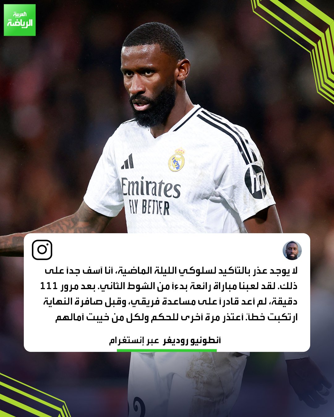 أنطونيو روديغر يعتذر للجماهير وحكم الكلاسيكو عن تصرفه في نهائي كأس الملك _رياضة