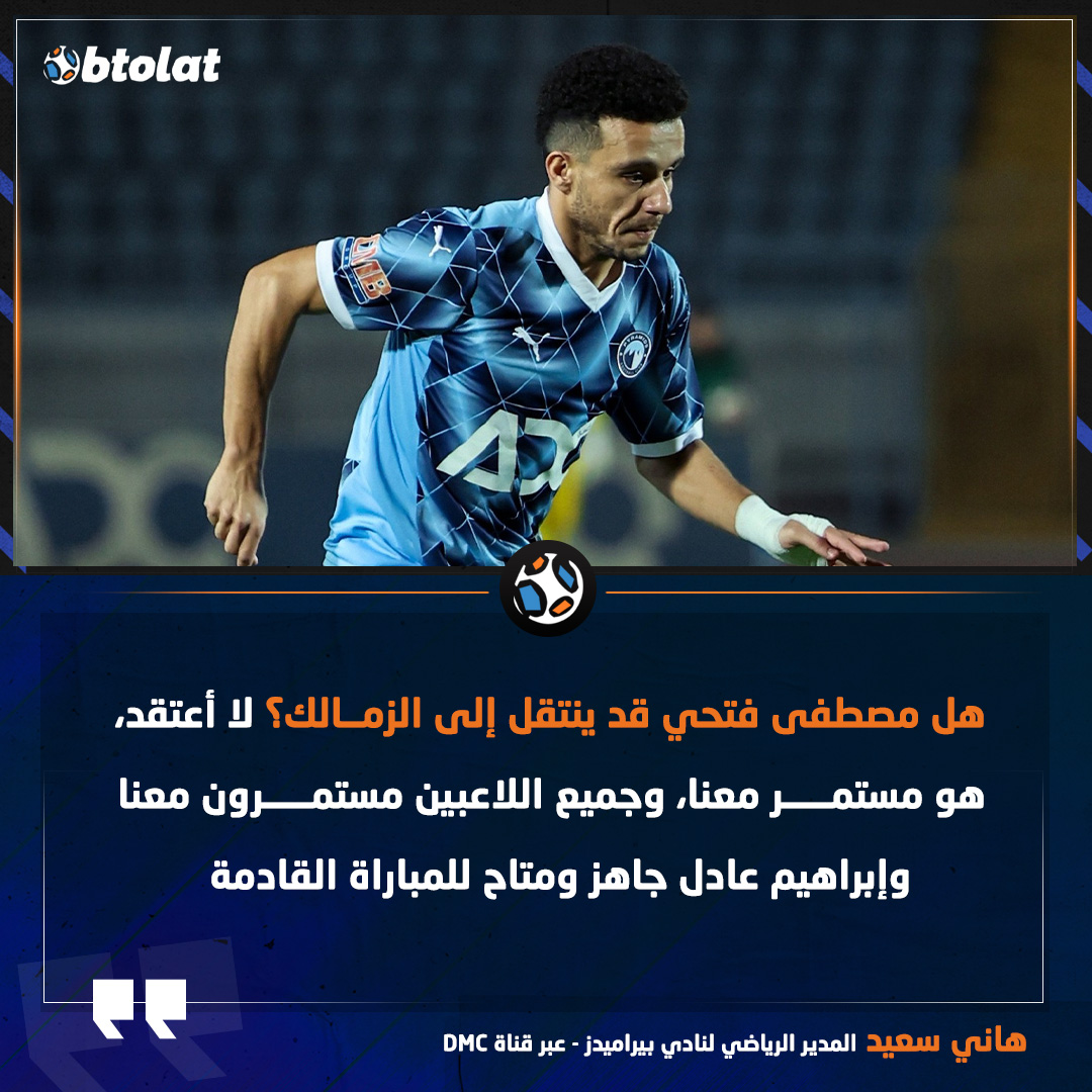 هاني سعيد عن انتقال مصطفى فتحي للزمالك. "لا أعتقد، هو مستمر معنا، وجميع اللاعبين مستمرون معنا"