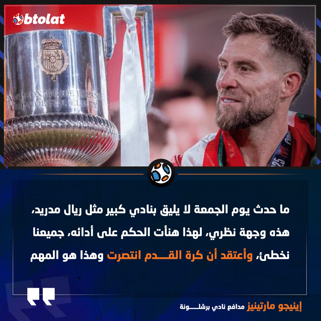 إينيجو مارتينيز: ما حدث يوم الجمعة لا يليق بنادي كبير مثل ريال مدريد، جميعنا نخطئ، وأعتقد أن كرة القدم انتصرت