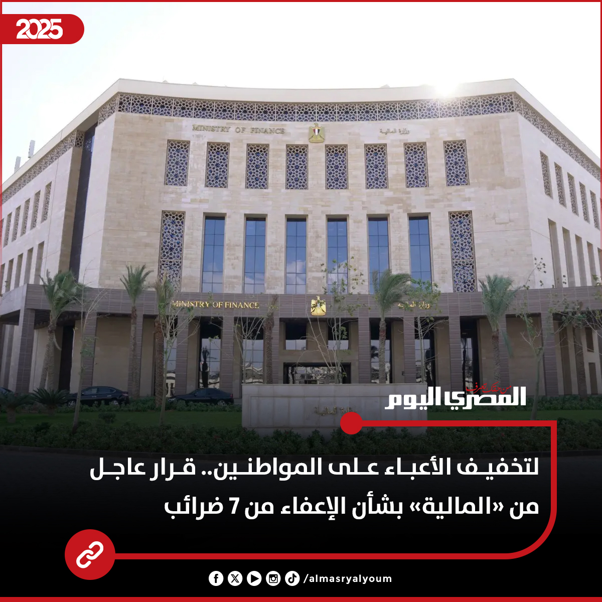 لتخفيف الأعباء على المواطنين.. قرار عاجل من «المالية» بشأن الإعفاء من 7 ضرائب