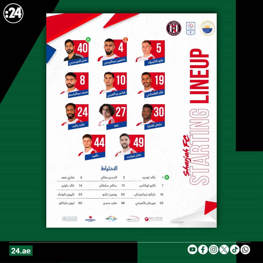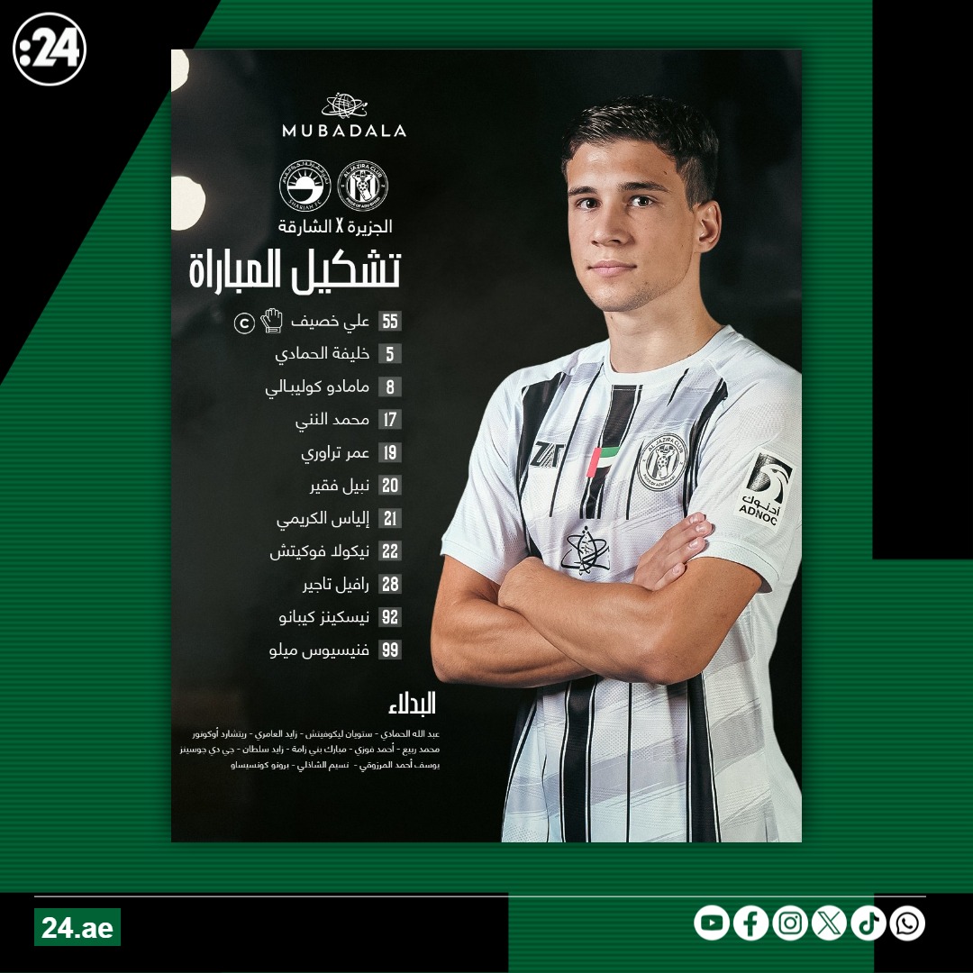 تشكيلتا الشارقة و الجزيرة في #دوري_أدنوك_للمحترفين