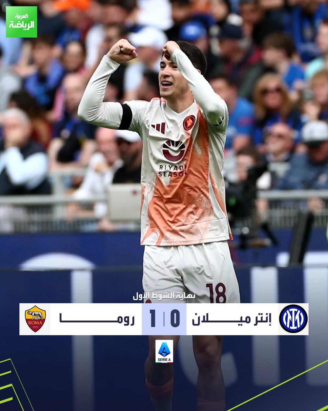 روما يتقدم على إنتر ميلان بهدف دون مقابل في الشوط الأول. إنتر ميلان 0 روما 1 (سولي) الدوري الإيطالي جوزيبي مياتزا _رياضة