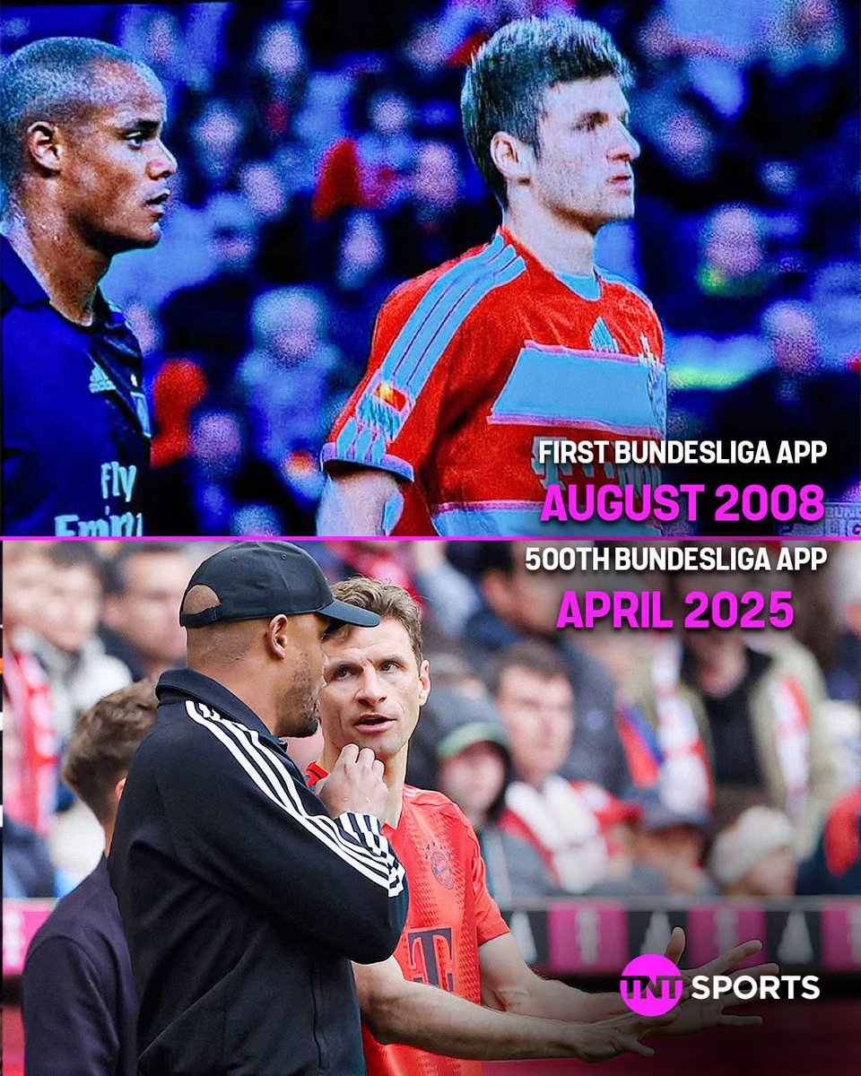 في أغسطس 2008.. ظهر توماس مولر لأول مرة في الدوري الألماني، وكان ذلك ضد فينسينت كومباني.. في أبريل 2025 وبعد مرور 499 مباراة.. خاض مولر مباراته رقم 500 في البوندسليجا تحت قيادة المدرب فينسينت كومباني.. واحدة من صدف كرة القدم الجميلة