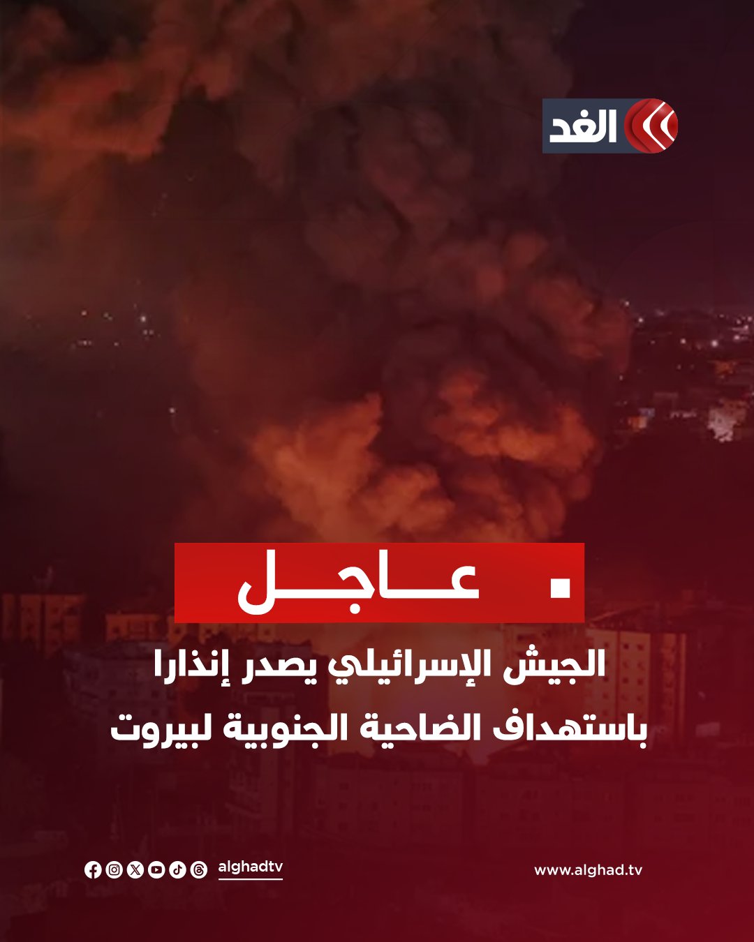 عاجل | الجيش الإسرائيلي يصدر إنذارا باستهداف الضاحية الجنوبية ل #بيروت