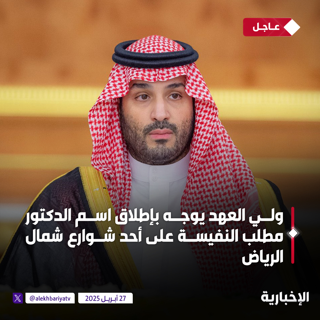 عاجل | ولي العهد يوجه بإطلاق اسم الدكتور مطلب النفيسة على أحد شوارع شمال الرياض #الإخبارية