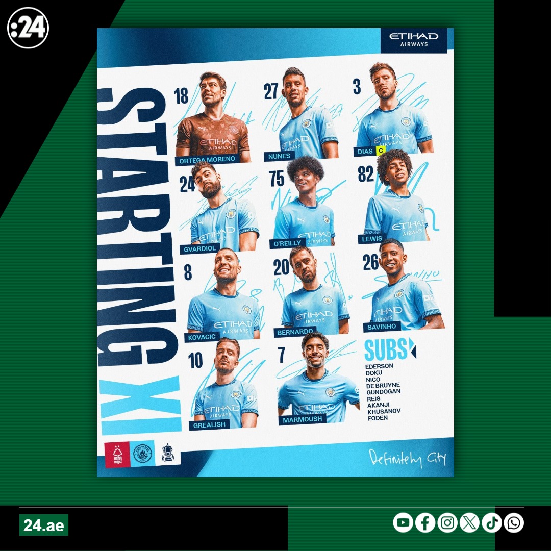 تشكيلتا مانشستر سيتي و نوتنغهام في نصف نهائي كأس الاتحاد الإنجليزي