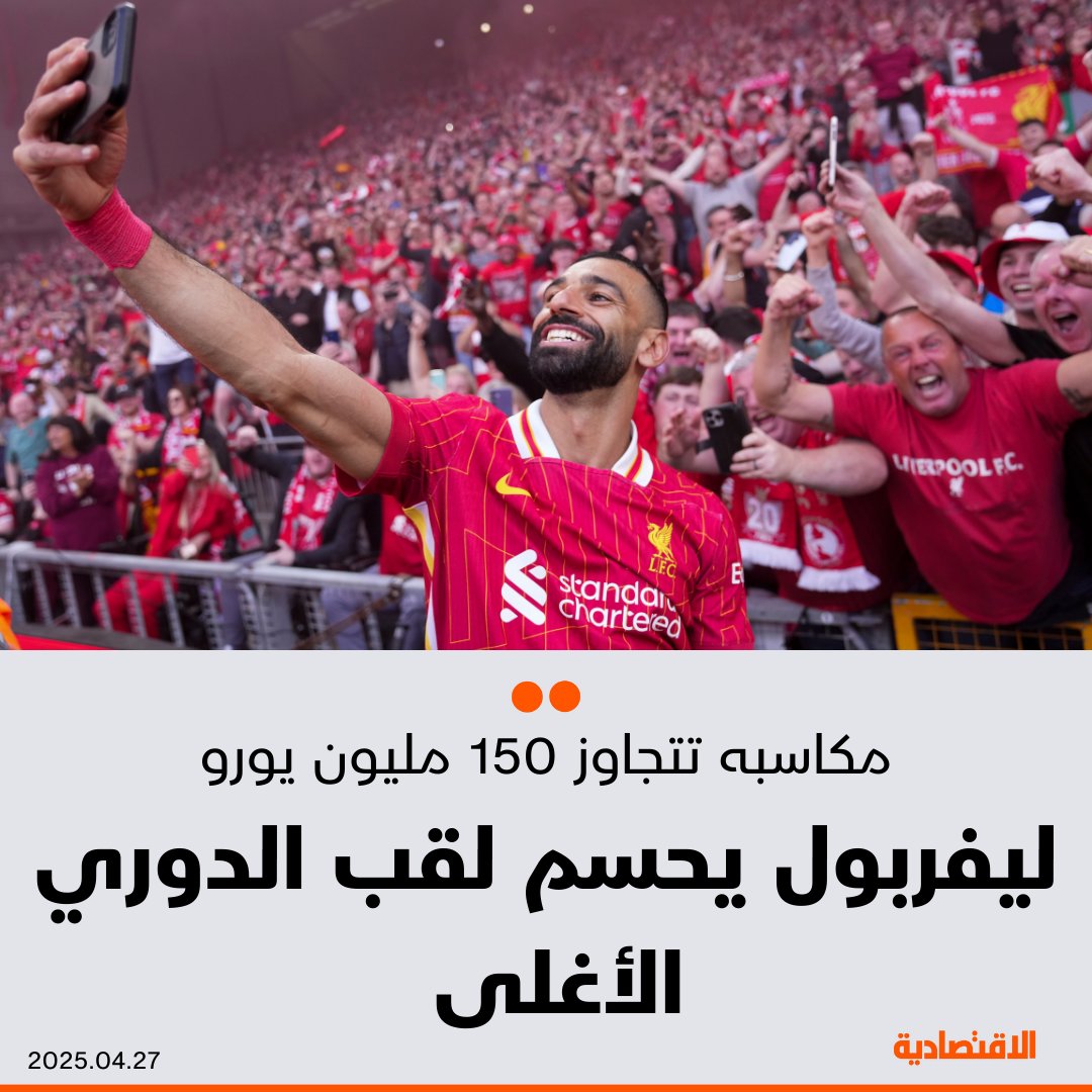 ليفربول يحسم لقب الدوري الإنجليزي الذي يعد الأغلى عالميا وتبلغ قيمته السوقية 11.8 مليار يورو، وفقا لموقع ترانسفير ماركت، وذلك بعد فوزه الكاسح على توتنهام 5-1 - مكاسب النادي المالية تتجاوز 150 مليون يورو
