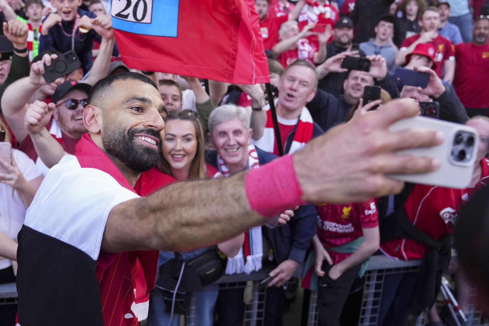 النجم المصري محمد صلاح لاعب ليفربول الإنجليزي رفقة الجماهير #ليفربول