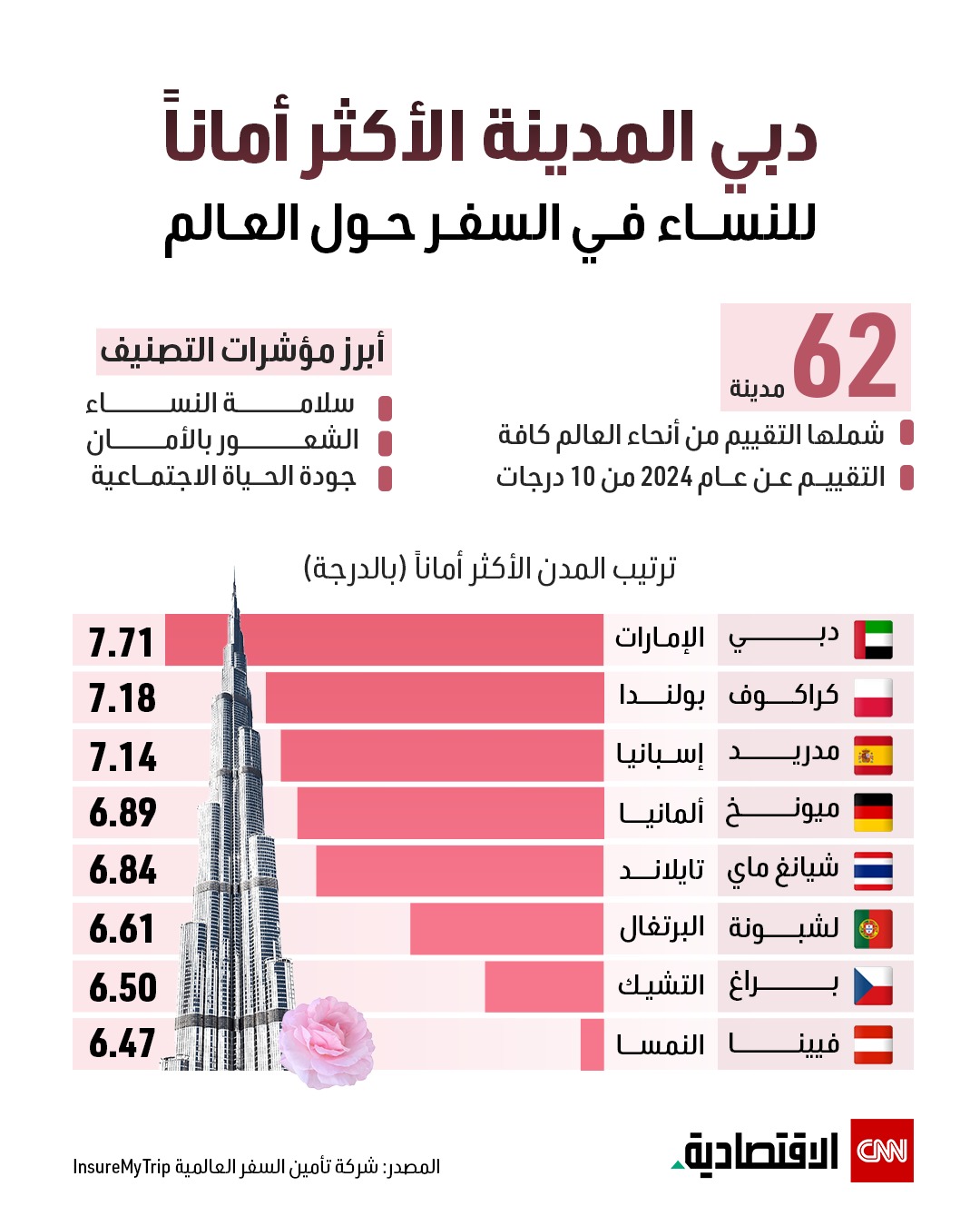 دبي تزيح الدول الأوروبية للتربع على عرش أكثر الدول أماناً للنساء حول العالم. إليك الترتيب بالتفصيل #العالم_بلغة_الأعمال