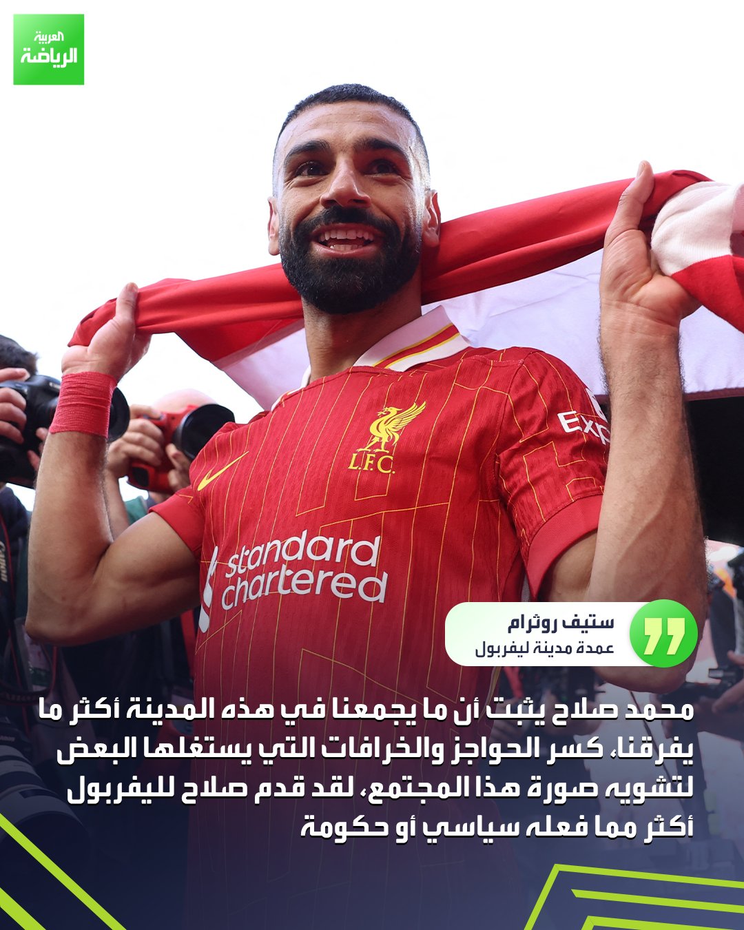 عمدة ليفربول: "صلاح أثبت أن ما يجمعنا في هذه المدينة أكثر ما يفرقنا، لقد قدم أكثر مما يفعله سياسي أو حكومة".. تابع المزيد: _رياضة