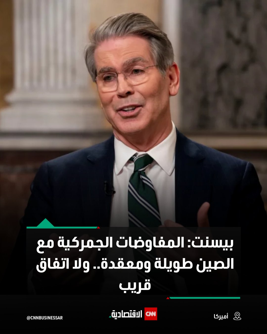 أكد وزير الخزانة الأميركي سكوت بيسنت في مقابلة تلفزيونية،أنه لم يتطرق إلى موضوع الرسوم الجمركية خلال لقاءاته مع نظرائه الصينيين الأسبوع الماضي في اجتماعات صندوق النقد الدولي في واشنطن. ورغم أن الرئيس الأميركي دونالد ترامب أعلن أن هناك مفاوضات جارية مع الصين، فإن بكين نفت ذلك بشكلٍ قاطع.. في حديثه لبرنامج ذيس ويك أند «This Week» على قناة أيه بي سي ABC، أوضح بيسنت أن محادثاته مع نظيره الصيني كانت تركّز على قضايا تقليدية، مثل الاستقرار المالي والتحذيرات الاقتصادية العالمية، مشيراً إلى أنه لا يعرف إذا كان ترامب قد تحدث مع الرئيس الصيني شي جين بينغ.. للتفاصيل | #العالم_بلغة_الأعمال
