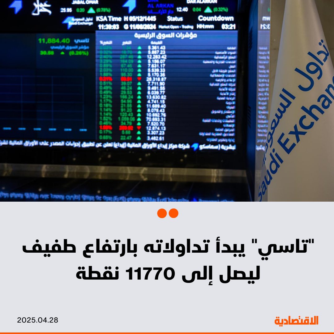 الأسهم السعودية تستهل تعاملات اليوم الاثنين مرتفعة 0.1% ليصل المؤشر الرئيسي تاسي إلى 11770 نقطة بدعم معظم الشركات على رأسها #مصرف_الراجحي