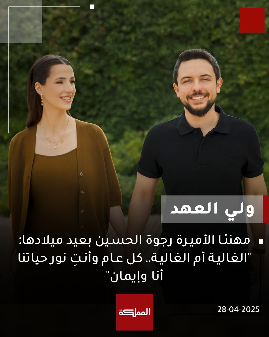 ولي العهد مهنئا الأميرة رجوة الحسين بعيد ميلادها: "الغالية أم الغالية.. كل عام وأنتِ نور حياتنا أنا وإيمان" #ولي_العهد