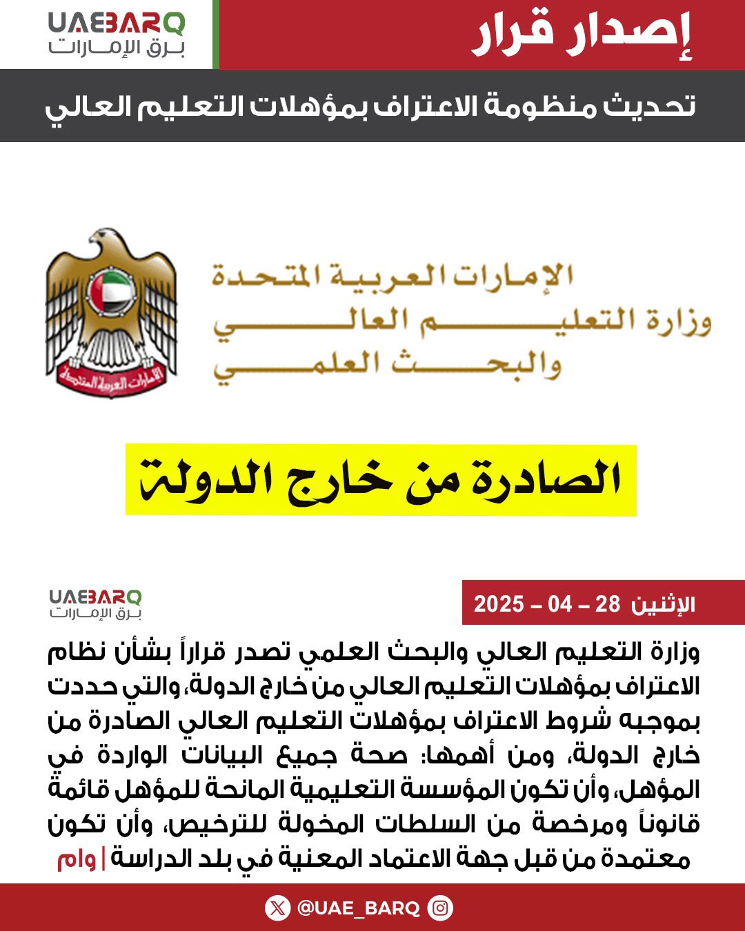 تحديث منظومة الاعتراف بمؤهلات التعليم العالي الصادرة من خارج الدولة | وام