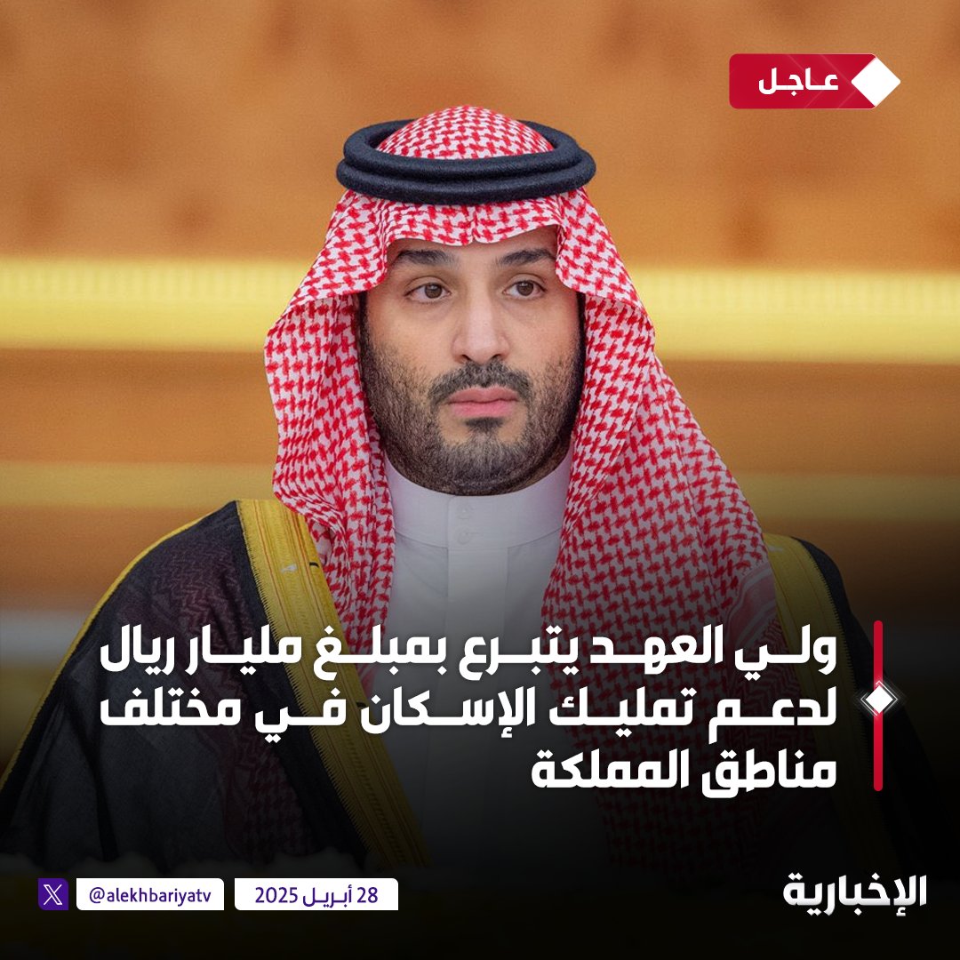 ولي العهد يُقدم تبرعًا سخيًا بمبلغ مليار ريال -على نفقته الخاصة- لمؤسسة الإسكان التنموي الأهلية سكن ممثلة ب جود الإسكان بهدف دعم تمليك الإسكان للمُستفيدين والأسر المستحقة ولي العهد يتبرع بمليار للإسكان | #الإخبارية