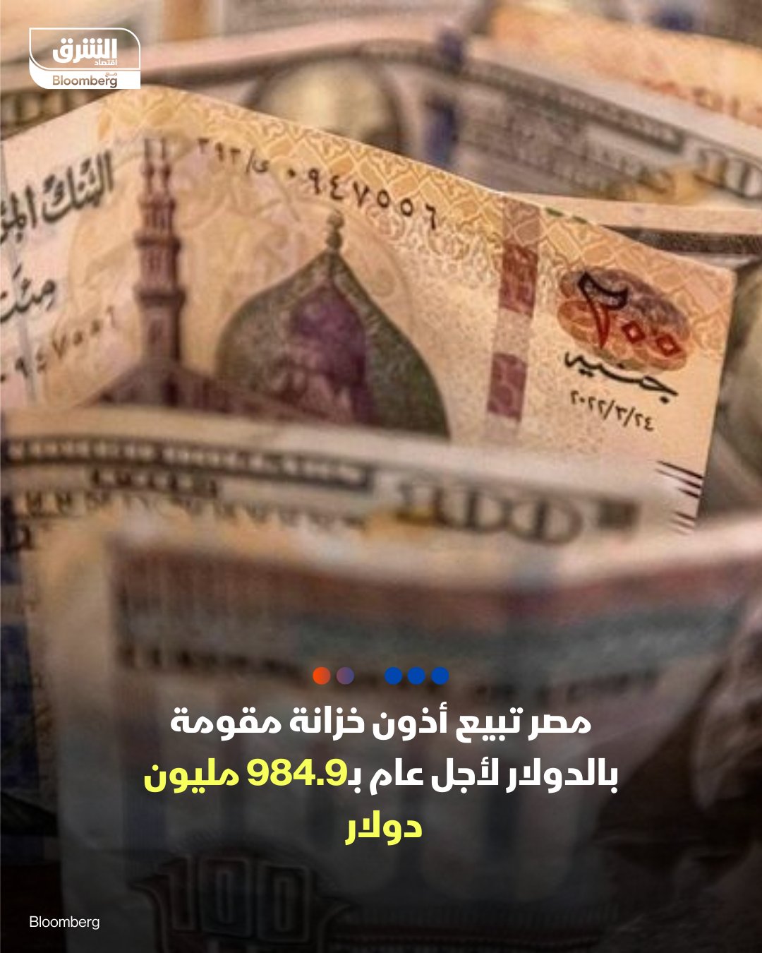 البنك المركزي: مصر تبيع أذون خزانة مقومة بالدولار لأجل عام، بقيمة 984.9 مليون دولار في عطاء بمتوسط عائد 4.25% #الشرق_مصر