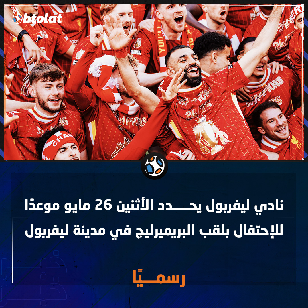 رسميًا. "نادي ليفربول يحدد الأثنين 26 مايو موعدًا للإحتفال بلقب البريميرليج في مدينة ليفربول"