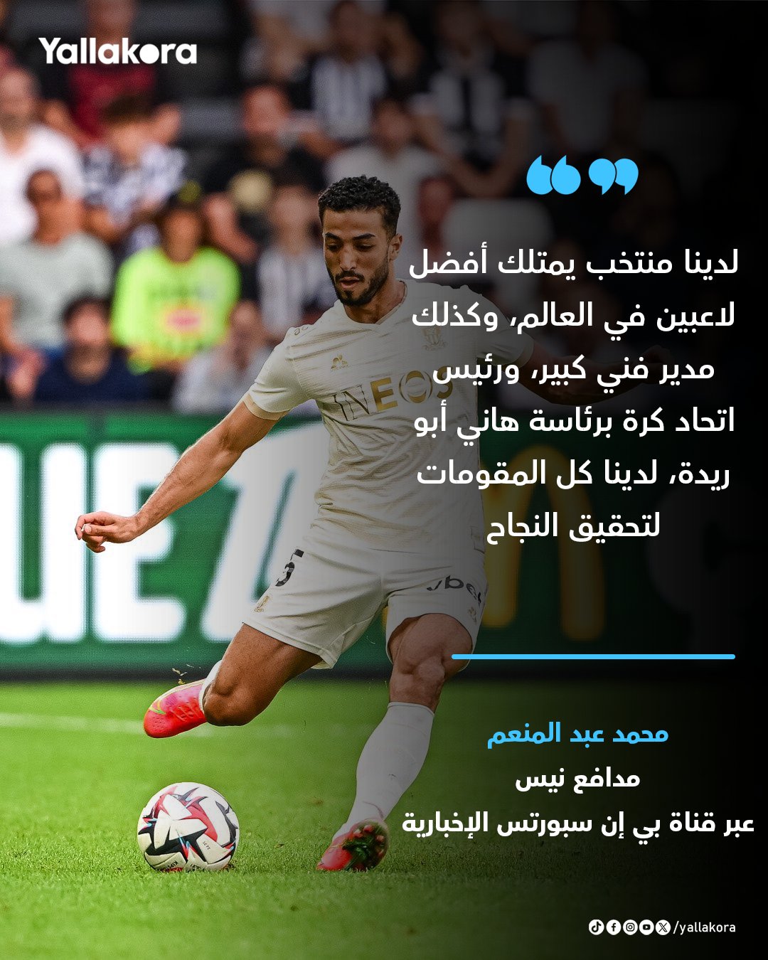 محمد عبد المنعم: لدينا منتخب يمتلك أفضل لاعبين في العالم، وكذلك مدير فني كبير، ورئيس اتحاد كرة برئاسة هاني أبو ريدة، لدينا كل المقومات لتحقيق النجاح