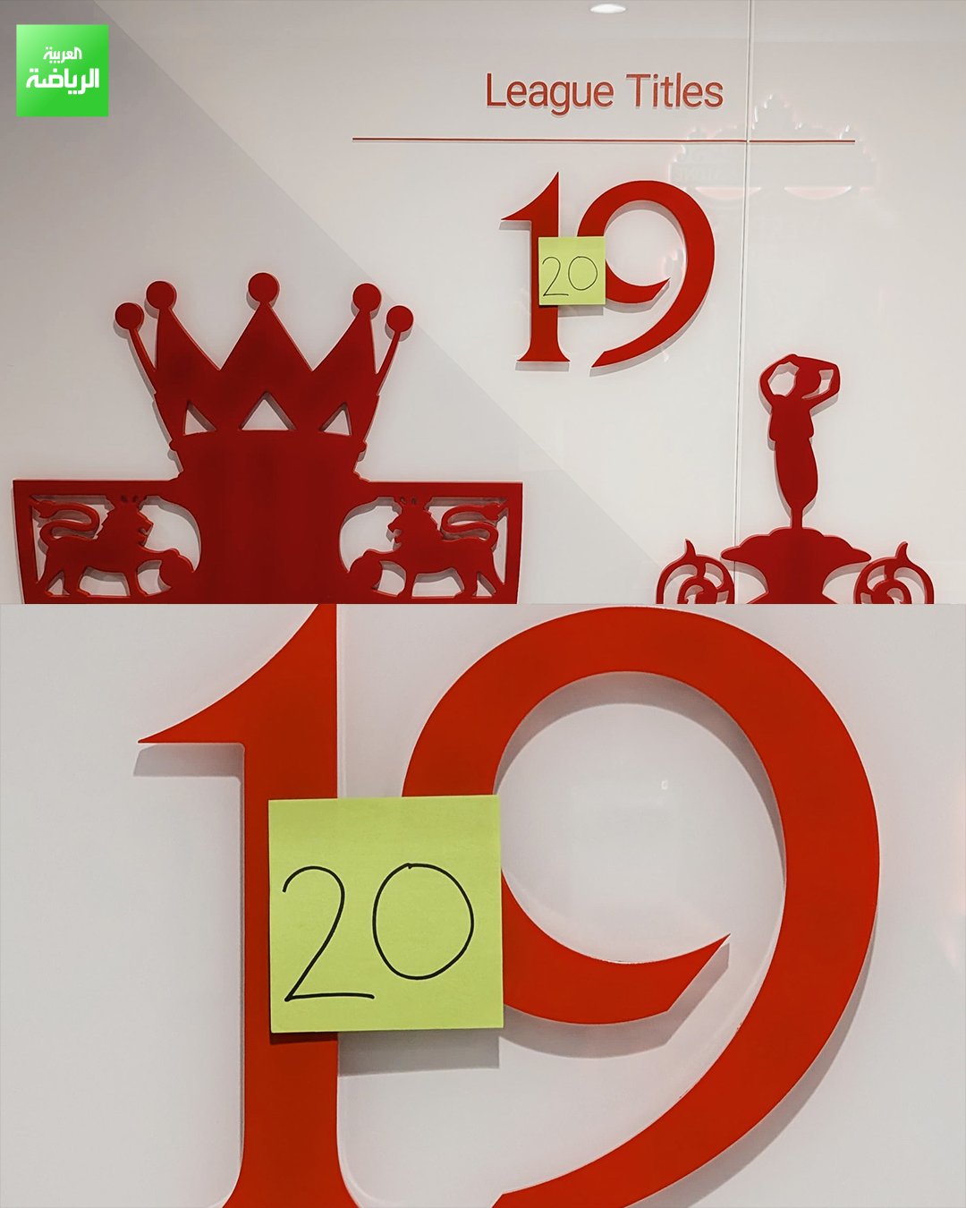ليفربول لم ينتظر تصميم الأرقام الجديد ووضع ورقة تحمل رقم 20 على ألقاب الدوري _رياضة