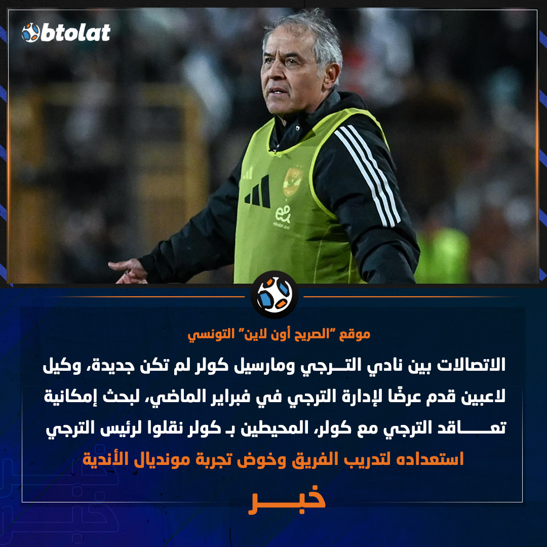 موقع "الصريح أون لاين" التونسي. الاتصالات بين نادي الترجي ومارسل كولر لم تكن جديدة، وكيل لاعبين قدم عرضًا لإدارة الترجي في فبراير الماضي، لبحث إمكانية تعاقد الترجي مع كولر. المحيطين ب كولر نقلوا لرئيس الترجي استعداده لتدريب الفريق وخوض تجربة مونديال الأندية