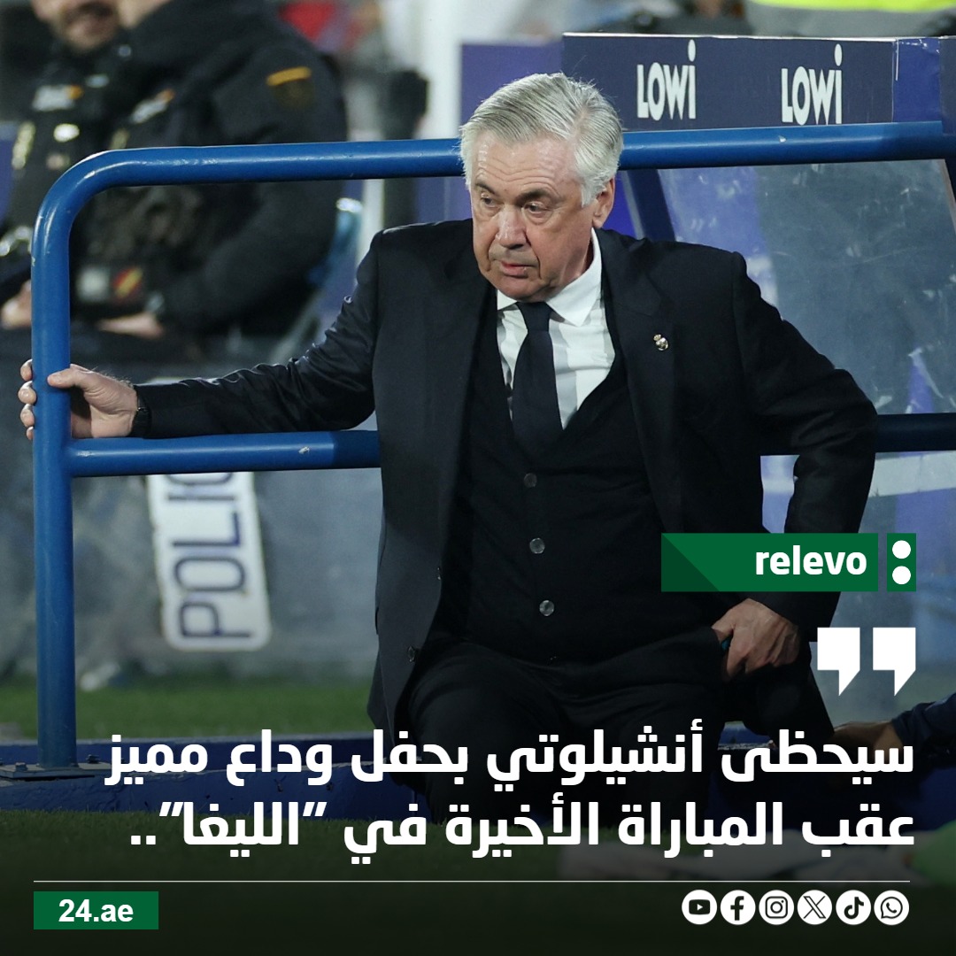 أفادت أن مدرب ريال مدريد، كارلو أنشيلوتي، سيحظى بحفل وداع مميز عقب المباراة الأخيرة في الدوري الإسباني هذا الموسم.. الحفل سيتضمن عرضاً لجميع الألقاب التي حققها المدرب الإيطالي مع النادي، في تكريم يعكس مسيرته الحافلة مع "الملكي"