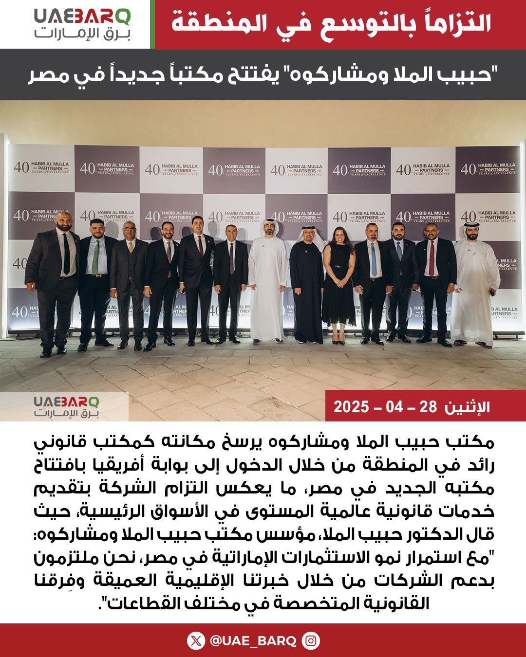 مكتب حبيب الملا ومشاركوه يرسخ مكانته كمكتب قانوني رائد في المنطقة من خلال الدخول إلى بوابة أفريقيا بافتتاح مكتبه الجديد في مصر