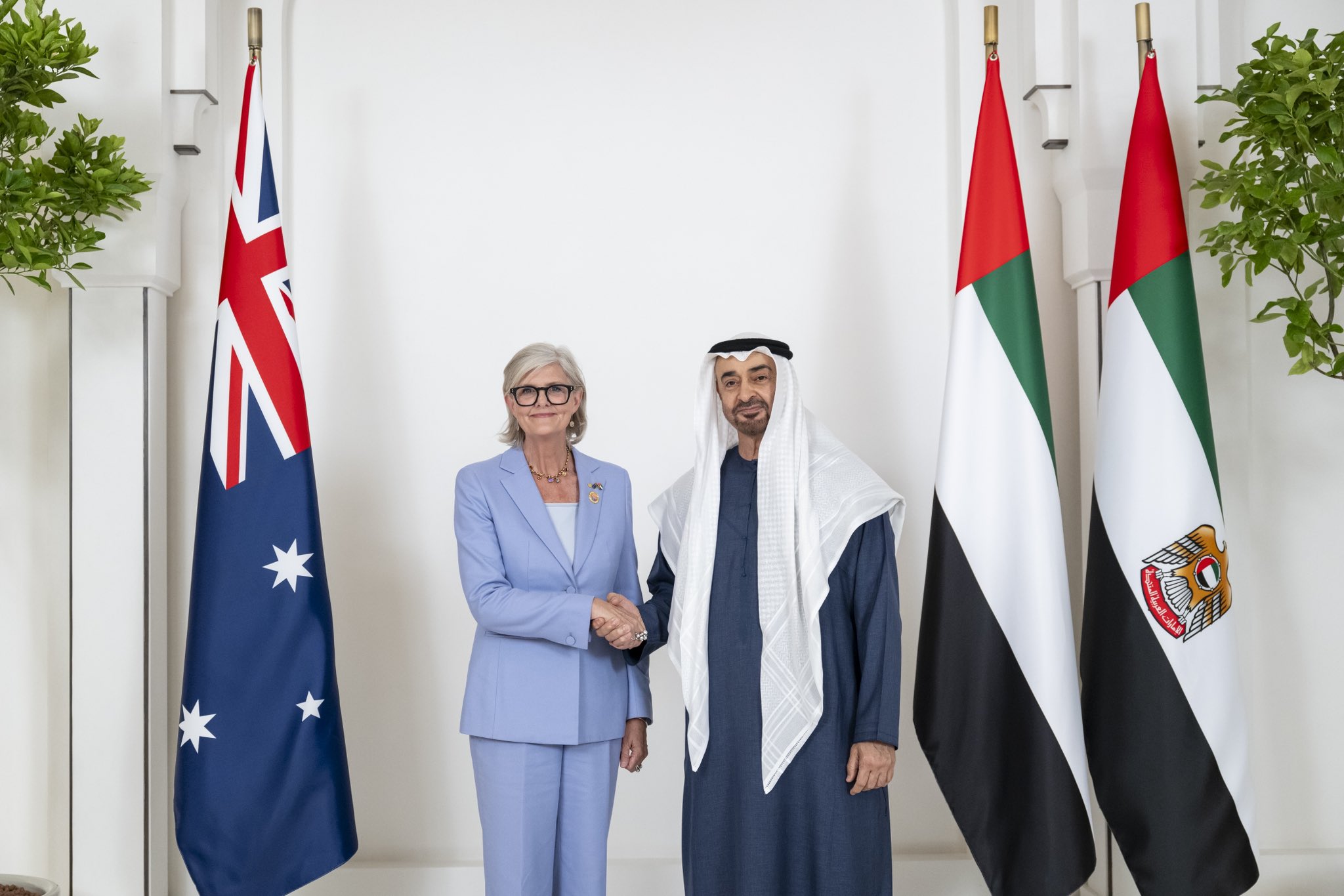رئيس الدولة: بحثت اليوم في أبوظبي وفخامة سام موستين الحاكمة العامة لأستراليا، العمل المشترك لتعزيز علاقاتنا التنموية بما يعود بالخير على بلدينا وشعبينا. بينما نحتفي هذا العام بمرور 50 عاماً على إقامة العلاقات الدبلوماسية، نؤكد حرص الإمارات على مواصلة التعاون مع أستراليا بما يخدم التنمية المشتركة ويدعم السلام والازدهار في العالم #وام