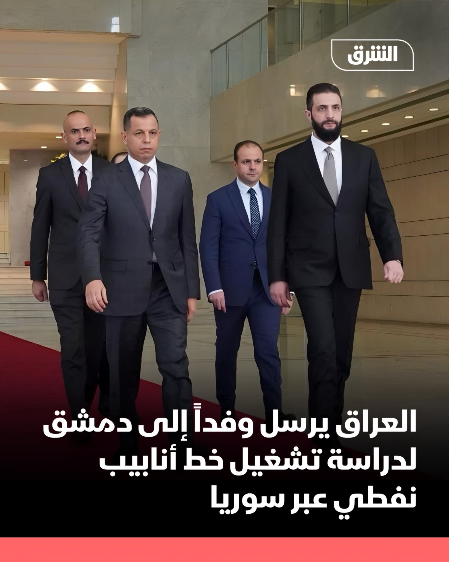قال مكتب رئيس الوزراء العراقي محمد شياع السوداني، إن العراق أرسل وفداً إلى دمشق، الجمعة، لدراسة إمكانية إعادة تشغيل أنبوب النفط العراقي الذي ينقل الخام عبر سوريا إلى موانئ البحر المتوسط. #الشرق_للأخبار