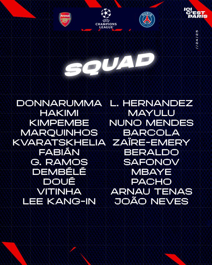 رسمياً قائمة باريس سان جيرمان المستدعاة لمواجهة أرسنال غداً في ذهاب نصف نهائي دوري أبطال أوروبا