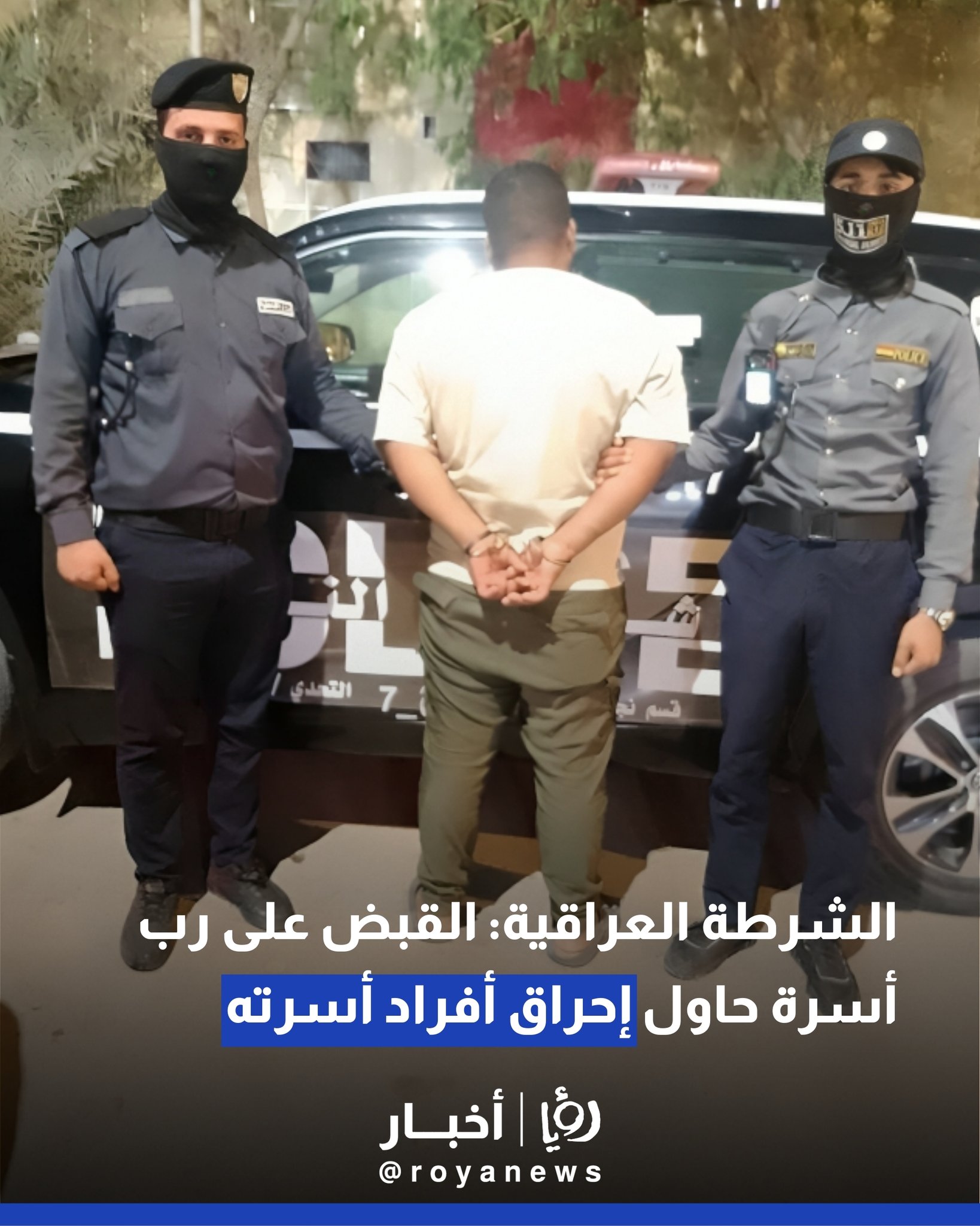 أعلنت قيادة شرطة الديوانية في العراق، الإثنين، أن دوريات النجدة تمكنت من إنقاذ عائلة كاملة بعدما أقدم رب الأسرة على سكب مادة البنزين على منزله وأفراد عائلته بهدف إحراقهم.