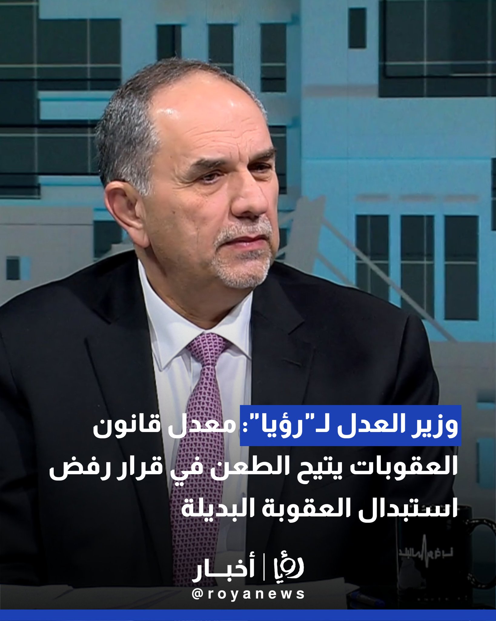 وزير العدل لـ"رؤيا": معدل قانون العقوبات يتيح الطعن في قرار رفض استبدال العقوبة البديلة