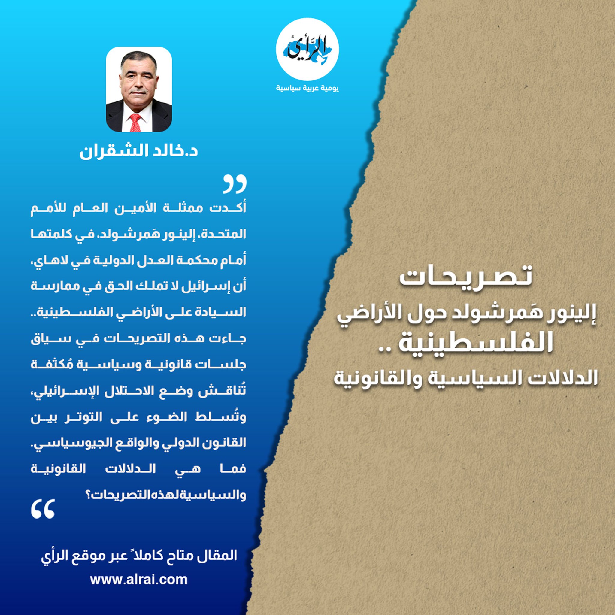 د. خالد الشقران أكدت ممثلة الأمين العام للأمم المتحدة، إلينور هَمرشولد، في كلمتها أمام محكمة العدل الدولية في لاهاي، أن إسرائيل لا تملك الحق في ممارسة السيادة على الأراضي الفلسطينية، معتبرةً أن عرقلة عمل وكالة الأمم المتحدة لإغاثة وتشغيل اللاجئين الفلسطينيين (الأونروا) تنتهك المواثيق الدولية. جاءت هذه التصريحات في سياق جلسات قانونية وسياسية مُكثفة تُناقش وضع الاحتلال الإسرائيلي، وتُسلط الضوء على التوتر بين القانون الدولي والواقع الجيوسياسي. فما هي الدلالات القانونية والسياسية لهذه التصريحات؟