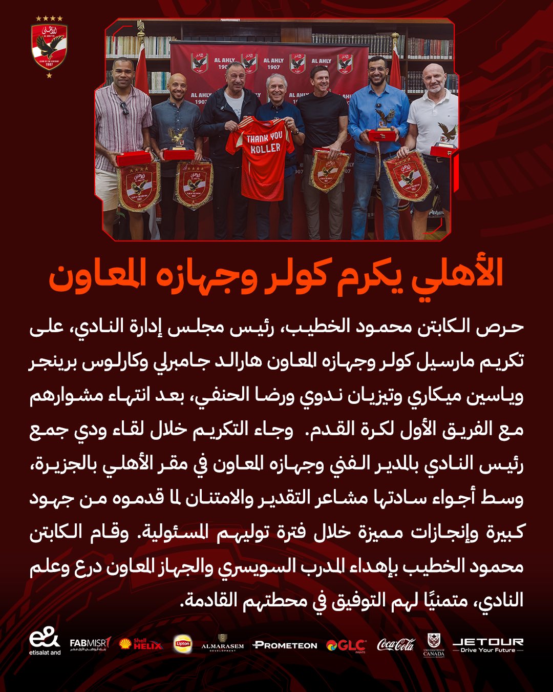 الأهلي المصري يكرم كولر وجهازه المعاون