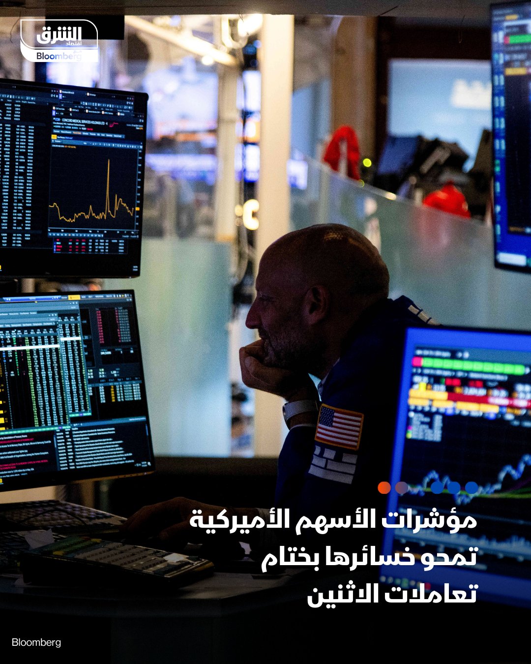 محت مؤشرات الأسهم الأميركية خسائرها وتحولت لمكاسب طفيفة مع ختام تعاملات جلسة اليوم الاثنين، إذ تستعد وول ستريت لأسبوع حافل بنتائج الأعمال والبيانات الاقتصادية، وسط ترقب لأي تقدم في مفاوضات الرسوم التجارية - مؤشر "ستاندرد آند بورز 500" يرتفع بنحو 0.06%، و"داو جونز" يصعد 0.28%، بينما أغلق "ناسداك المركب" على خسائر طفيفة بلغت 0.1% #اقتصاد_الشرق