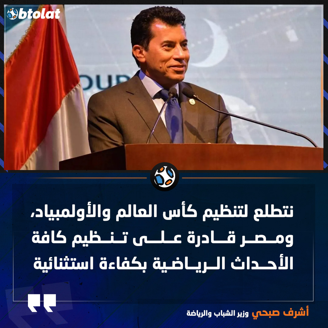 أشرف صبحي. نتطلع لتنظيم كأس العالم والأولمبياد، ومصر قادرة على تنظيم كافة الأحداث الرياضية بكفاءة استثنائية