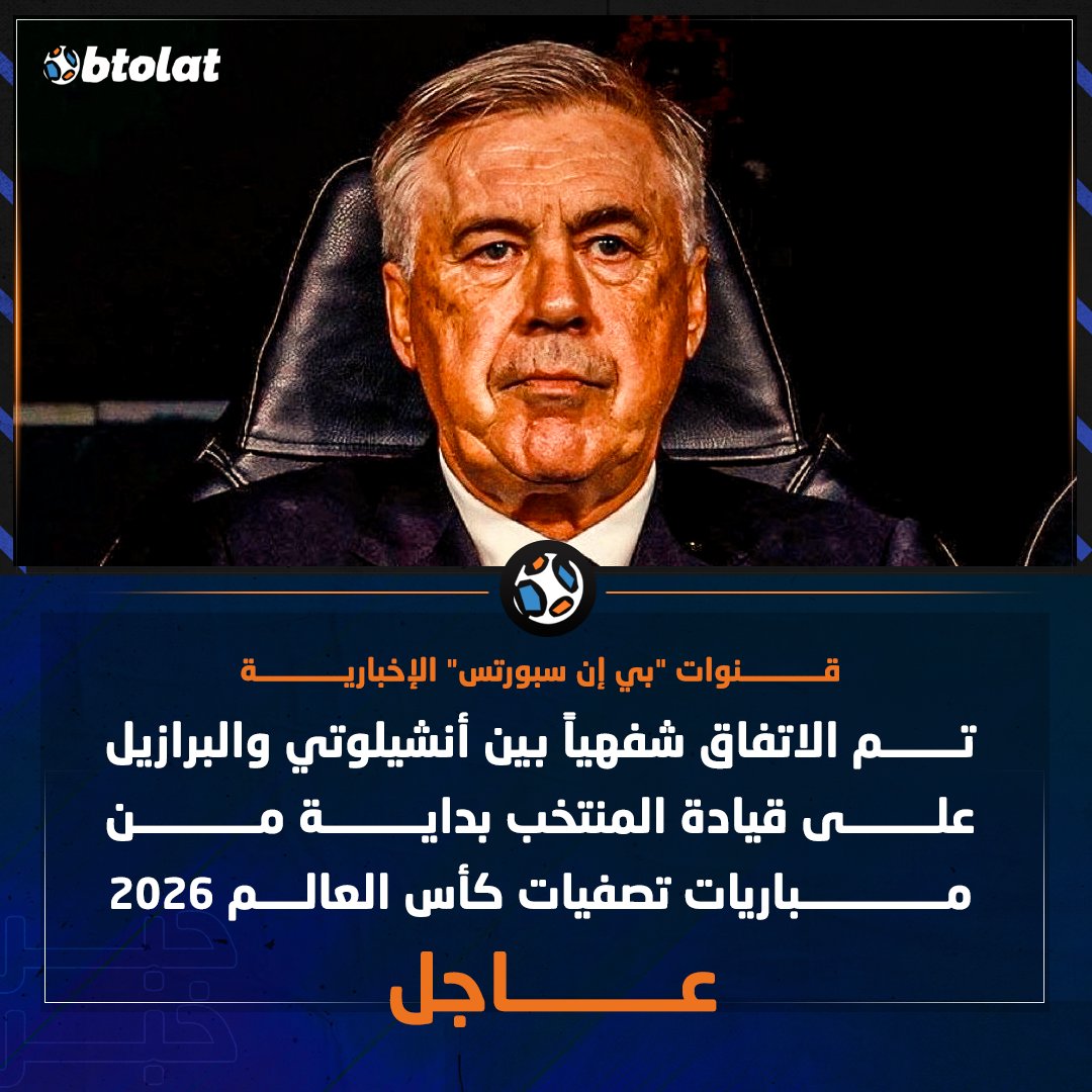 وفقاً ل قنوات "بي إن سبورتس". تم الاتفاق شفهياً بين أنشيلوتي والبرازيل على قيادة المنتخب بداية من مباريات تصفيات كأس العالم 2026