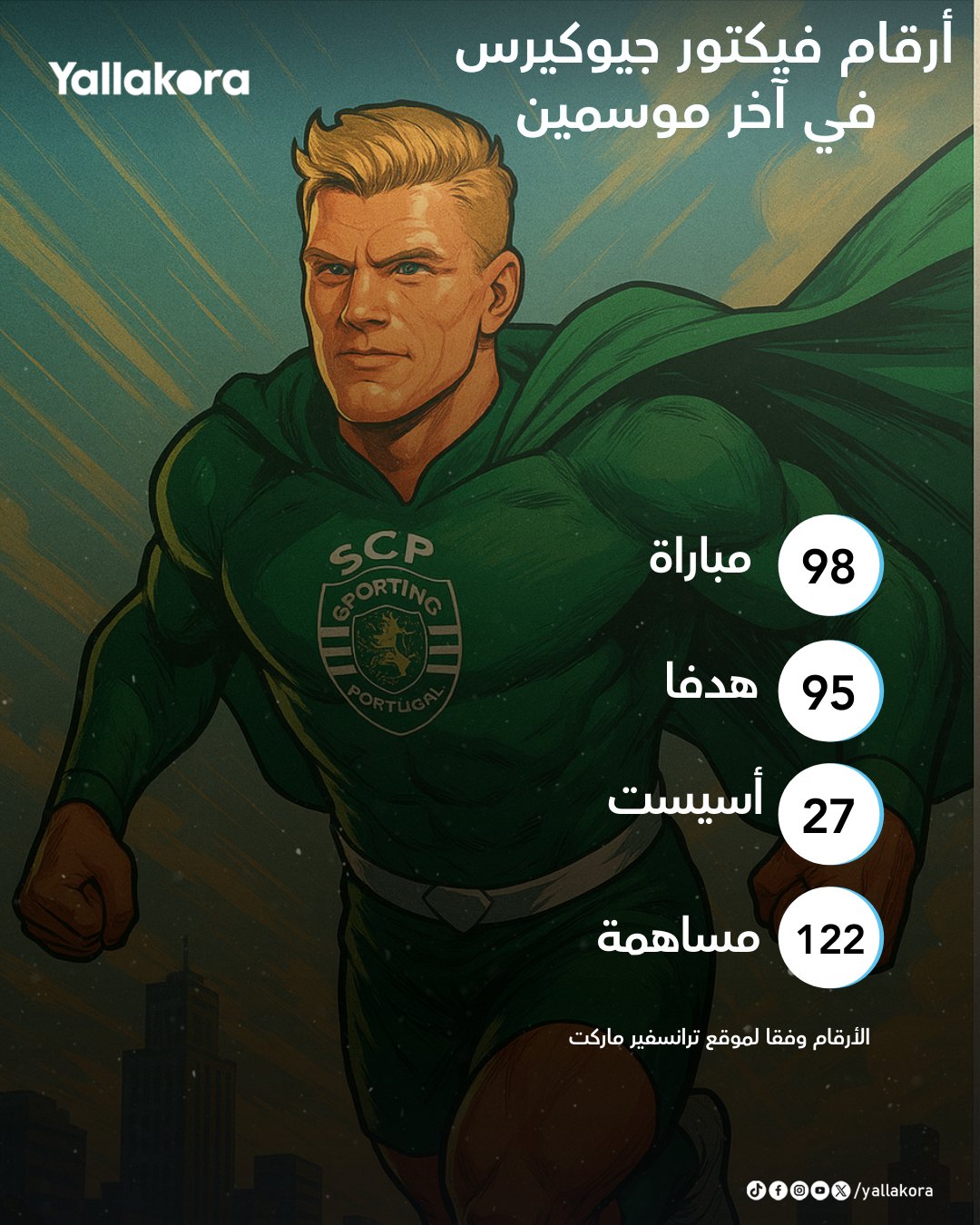 أرقام خيالية للهداف القناص جيوكيرس مع سبورتينج لشبونة في آخر موسمين. 95 هدفا و 27 أسيست في 98 مباراة. أين تتمنى أن تراه الموسم القادم برأيك؟