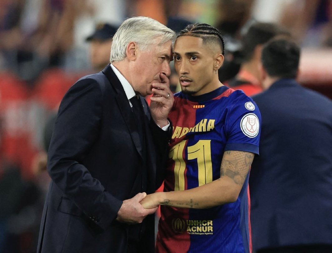 أنشيلوتي ورافينيا في نهائي كأس الملك السبت الماضي... يبدو أننا سنرى هذه الصورة قريبا في التوقف الدولي القادم