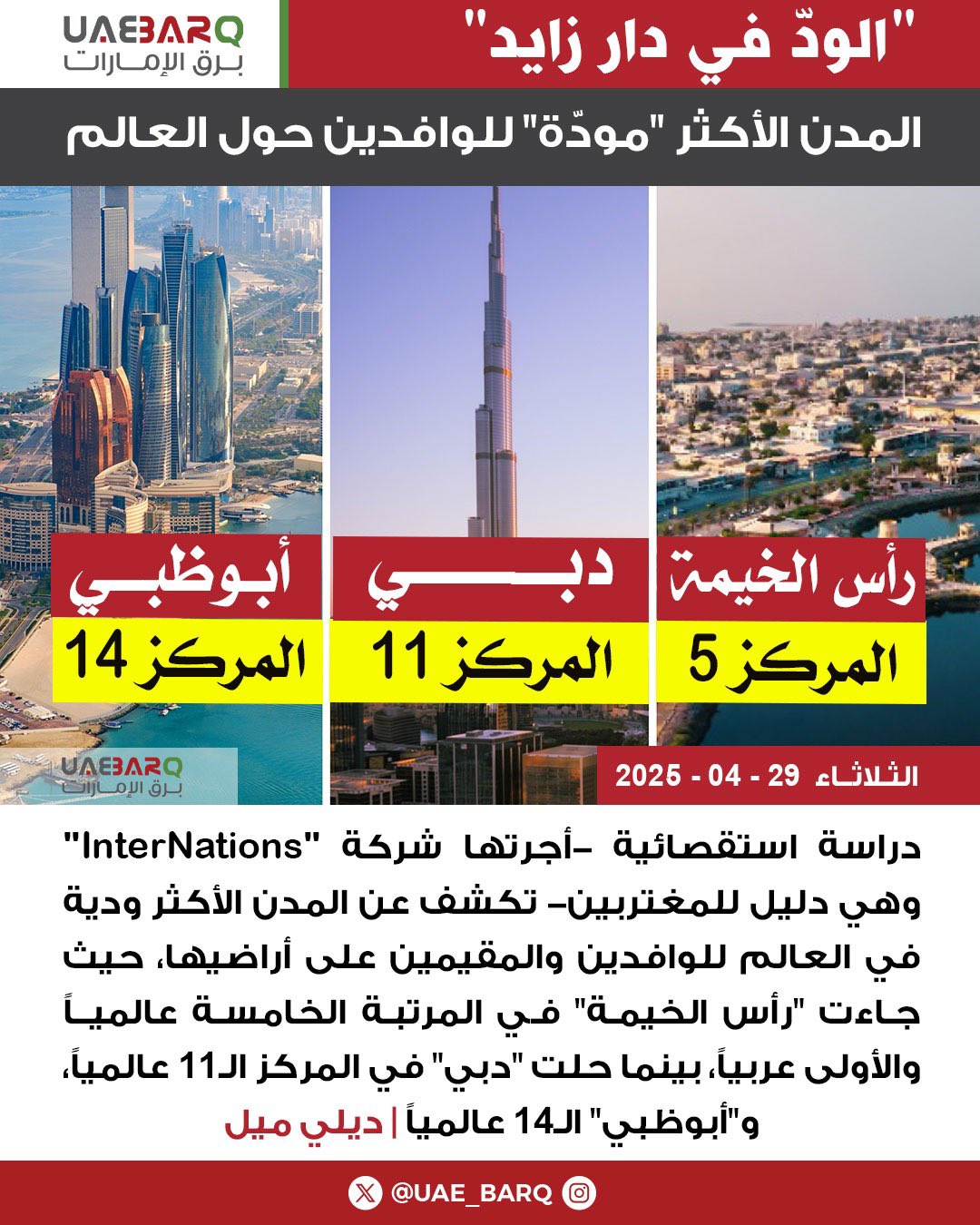"الودّ في دار زايد".. المدن الأكثر "مودّة" للوافدين حول العالم | ديلي ميل