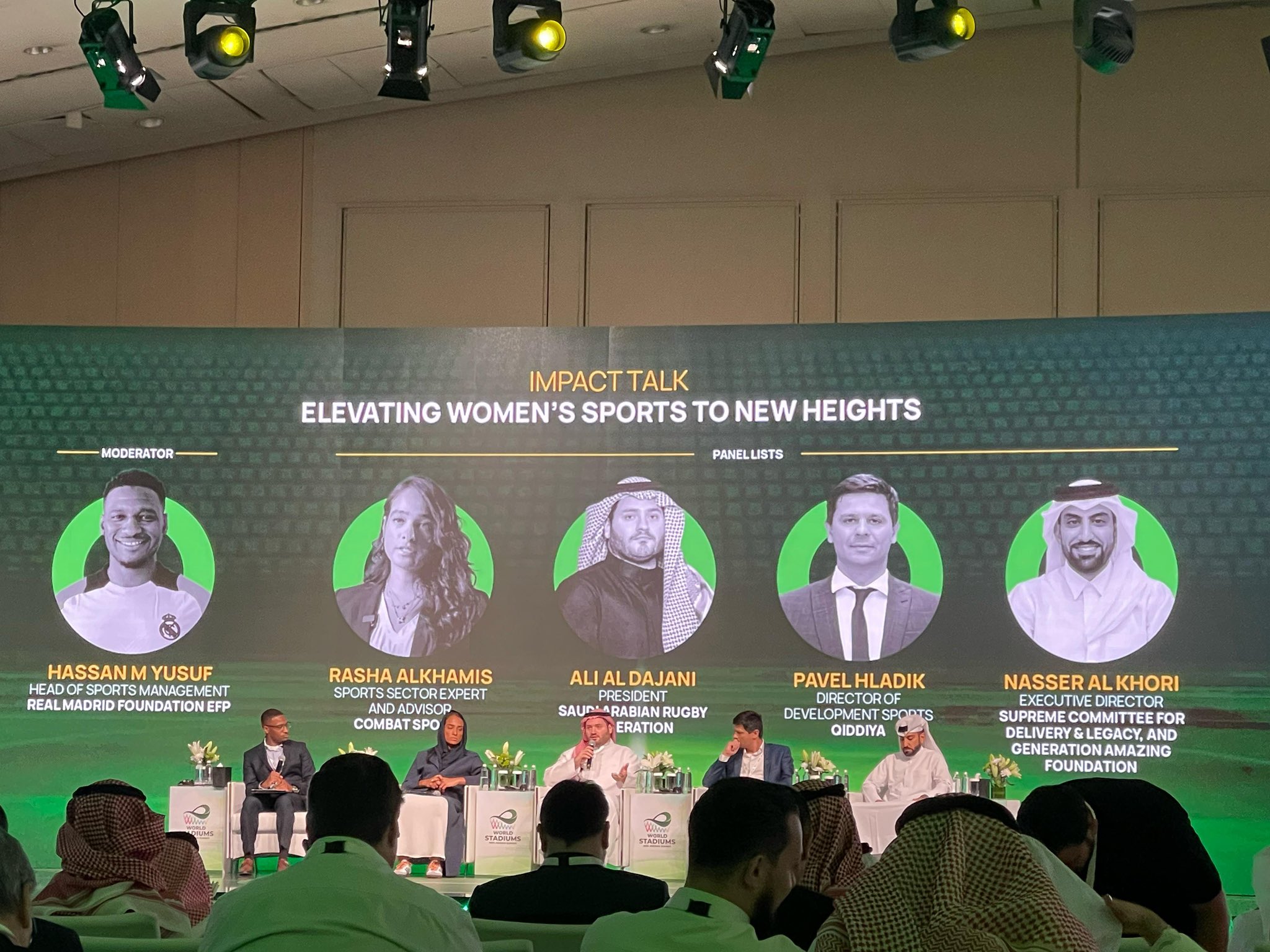 علي الدجاني رئيس الاتحاد السعودي للرغبي في حديثه أثناء جلسة الارتقاء بالرياضة النسائية إلى آفاق جديدة: - منذ انطلاق مشاركة المرأة في اتحاد الرغبي عام 2019، شهدنا تزايدًا ملحوظًا في حضورها الفعّال خاصة بعد جائحة كورونا التي شكّلت نقطة تحوّل نوعية، ورغم هذا التقدم اللافت في رياضات المرأة، ما تزال العادات والتقاليد الأصيلة في المملكة حاضرة بمحاذاة هذا التطور. #المؤتمر_الدولي_للملاعب