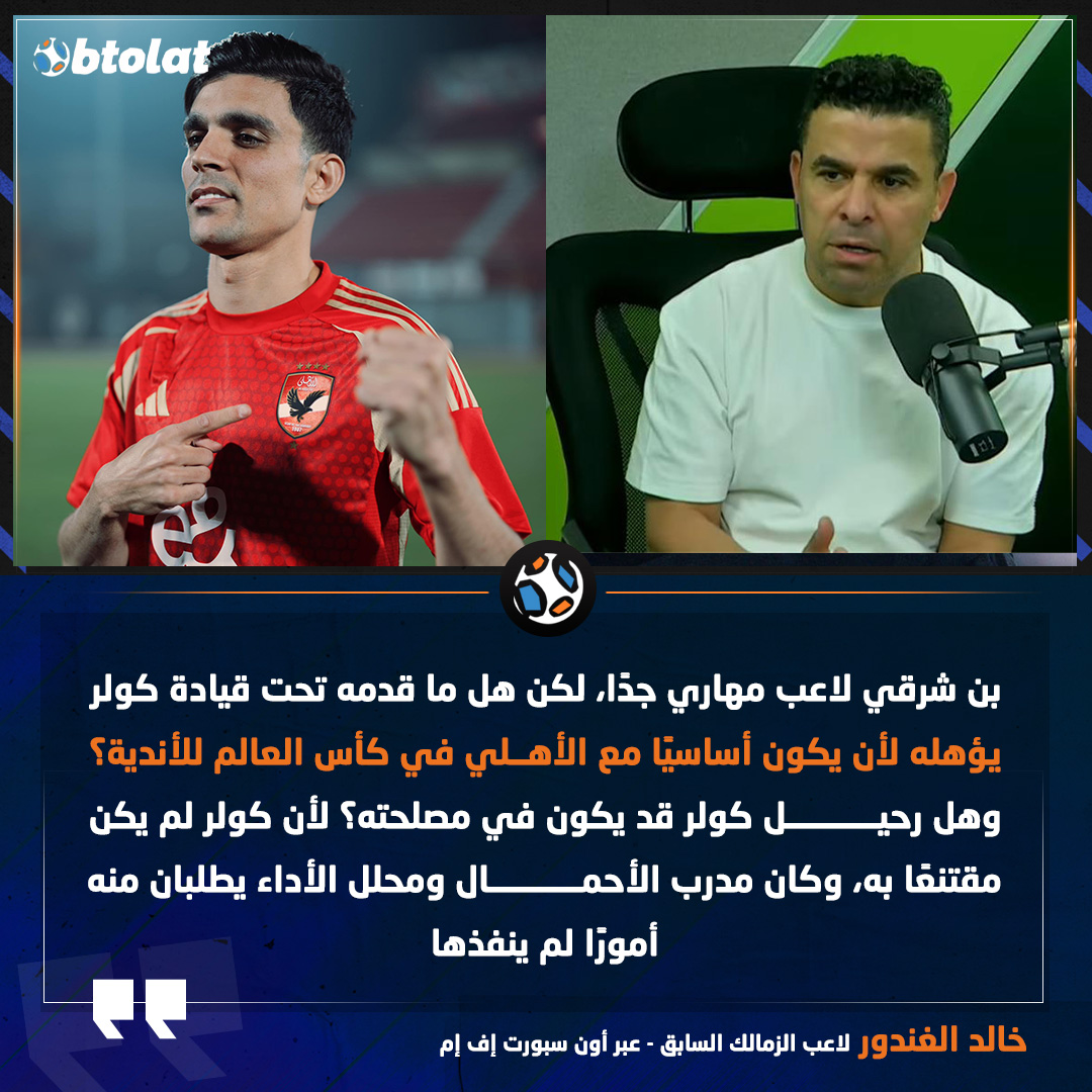 خالد الغندور: بن شرقي لاعب مهاري جدًا، لكن هل ما قدمه تحت قيادة كولر يؤهله لأن يكون أساسيًا مع الأهلي في كأس العالم للأندية؟