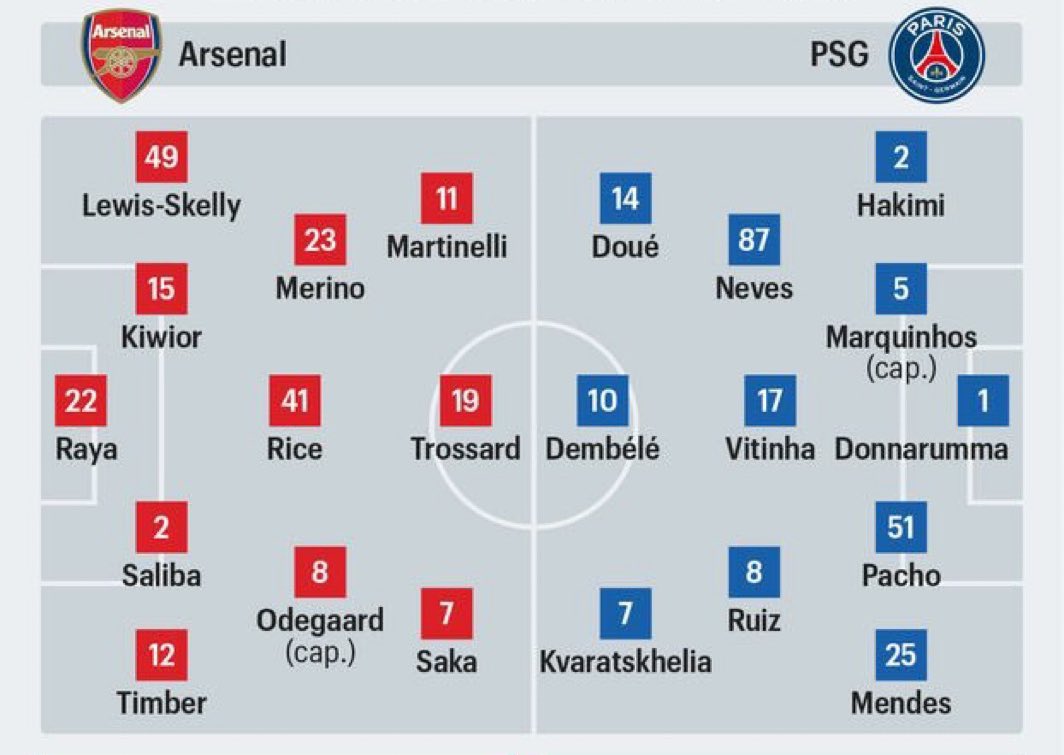 التشكيلة المتوقعة لمباراة أرسنال ضد باريس سان جيرمان الليلة