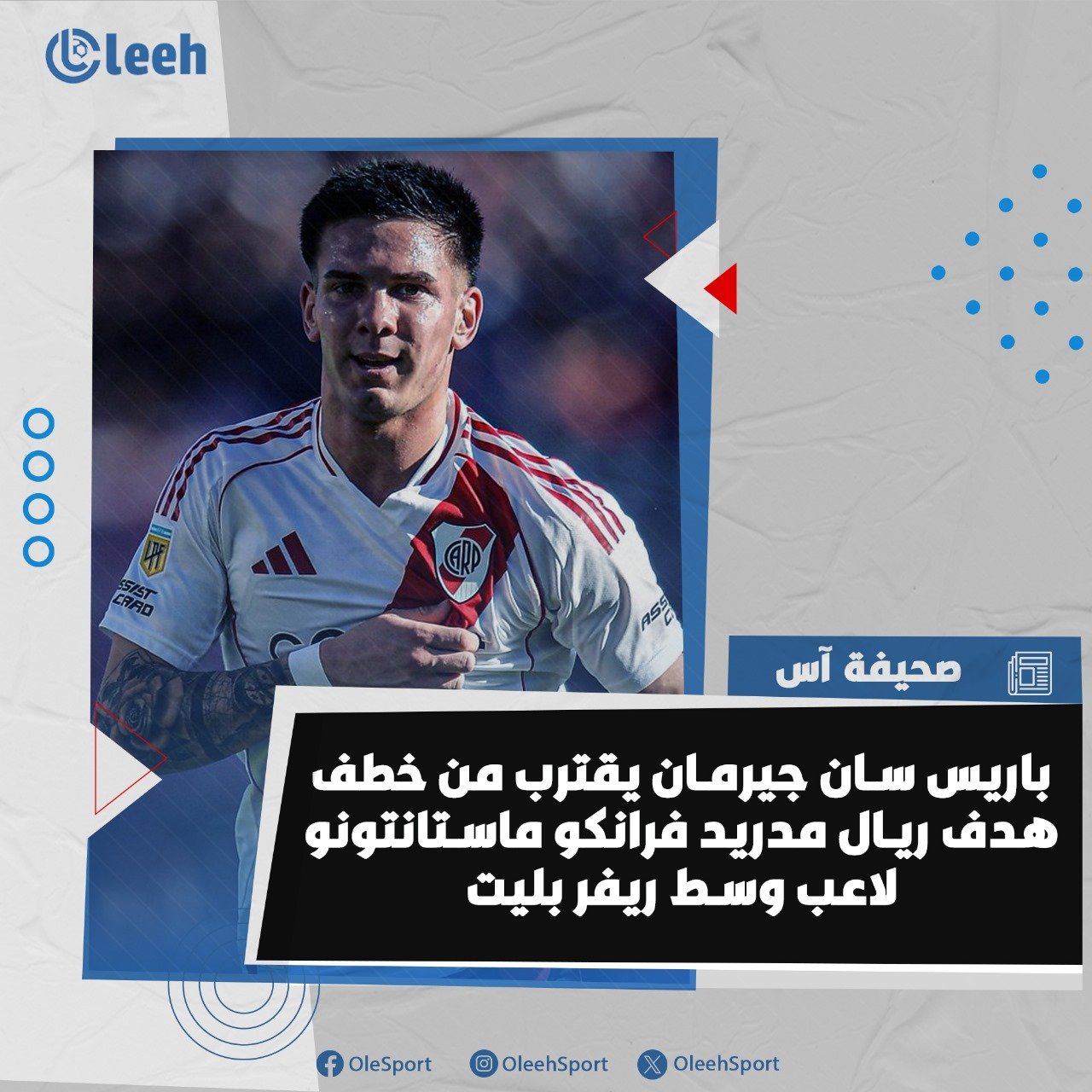 باريس سان جيرمان يقترب من التعاقد مع فرانكو ماستانتونو لاعب وسط ريفر بليت ، الذي كان محط إهتمام ريال مدريد .. وفقاً لصحيفة آس