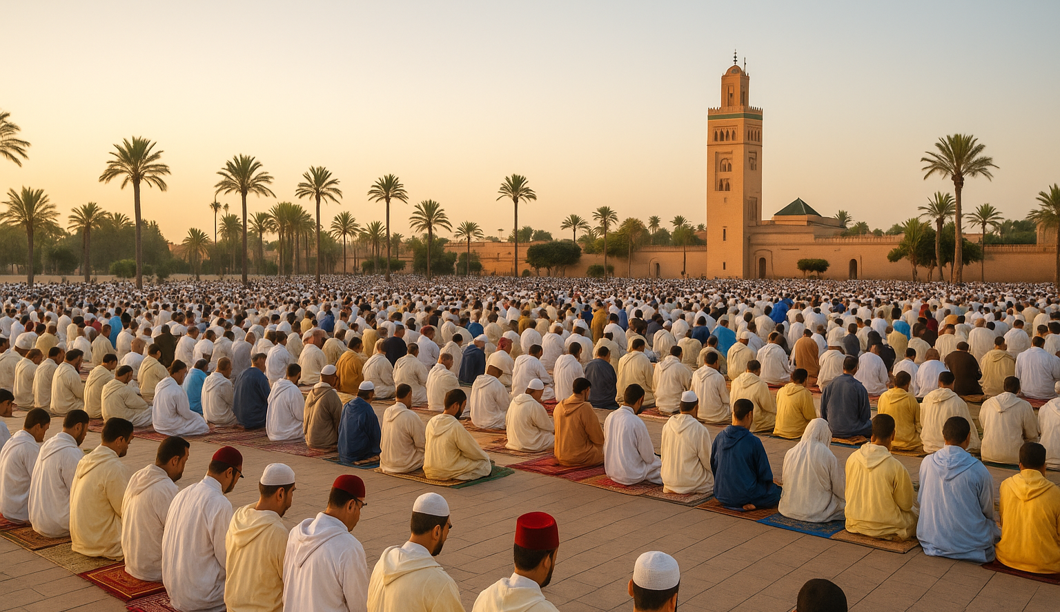 أقام حشود من المغاربة صباح السبت 7 يونيو 2025 صلاة عيد الأضحى في مختلف ربوع المملكة المغربية في أجواء من الهدوء والخشوع والسكينة، حيث توافد المواطنون منذ الساعات الأولى من الفجر على المصلّيات والساحات الكبرى، و المساجد، رجالا ونساء وأطفالا، مرددين تكبيرات العيد. تميزت هذه المناسبة الدينية هذه السنة بالتخلي عن نحر الأضحية تجاوبا مع الإهابة الملكية للحفاظ على القطيع الوطني من الأغنام و الماعز و رأفة بذوي الدخل المحدود، بعد أن عرفت أسعار الأكياس و سجلت اللحوم الحمراء أرقام قياسية.