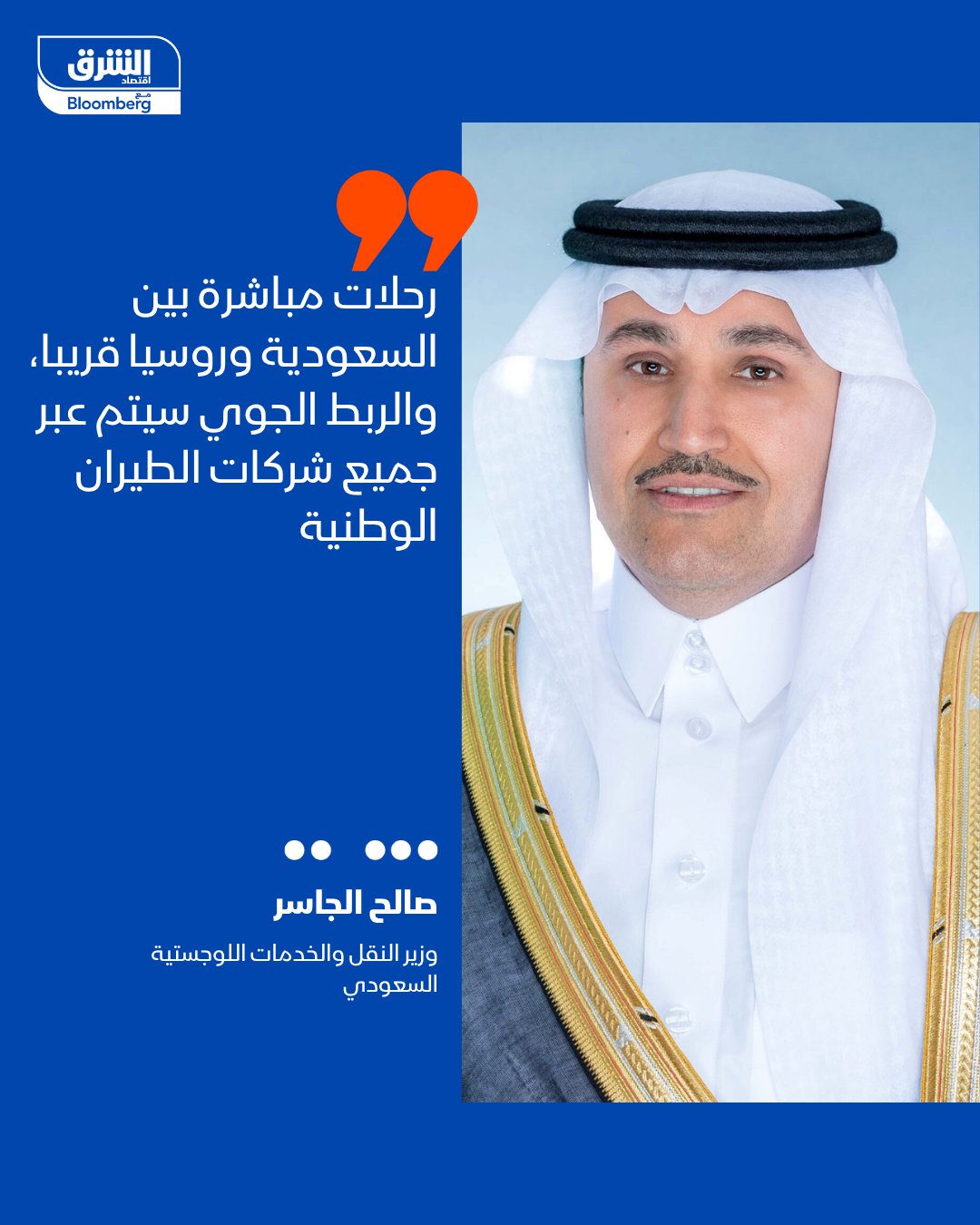 وزير النقل والخدمات اللوجستية السعودي صالح الجاسر ل "الاقتصادية": رحلات مباشرة بين المملكة و روسيا قريبا. وأضاف الجاسر، أن الربط الجوي المباشر سيتم عبر كل شركات الطيران الوطنية، الخطوط السعودية، وناس، وربما أديل وقريبا طيران الرياض - المقابلة كانت على هامش منتدى "سانت بطرسبورغ الاقتصادي العالمي #اقتصاد_الشرق