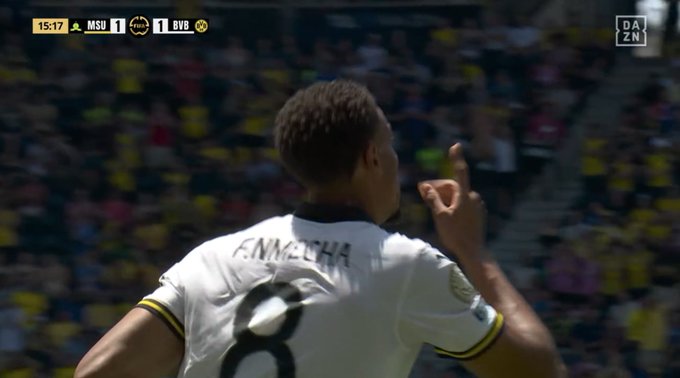 فيليكس نميشا يُسجّل هدف التعادل لبوروسيا دورتموند في الدقيقة 16، ليُعيد المباراة إلى نقطة البداية ويشعل الأجواء مجددًا
