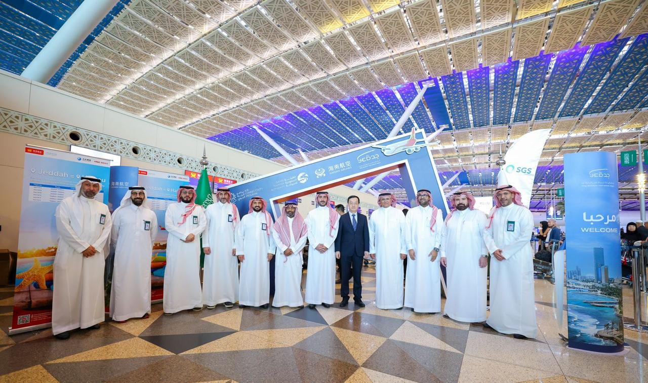وكان في استقبال الرحلة الرئيس التنفيذي لشركة مطارات جدة المهندس مازن بن محمد جوهر والقنصل العام لجمهورية الصين الشعبية بجدة وانغ تشي وعدد من قيادات هيئة السياحة وبرنامج الربط الجوي والقطاعات الحكومية والأمنية العاملة في المطار.