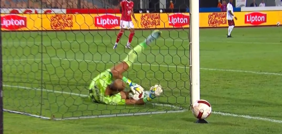 لقطة تصدي محمد بسام لتسديدة تريزيجيه.. مطالبات من لاعبي الأهلي بأن الكرة تخطت خط المرمى. ما رأيك في قرار الحكم؟