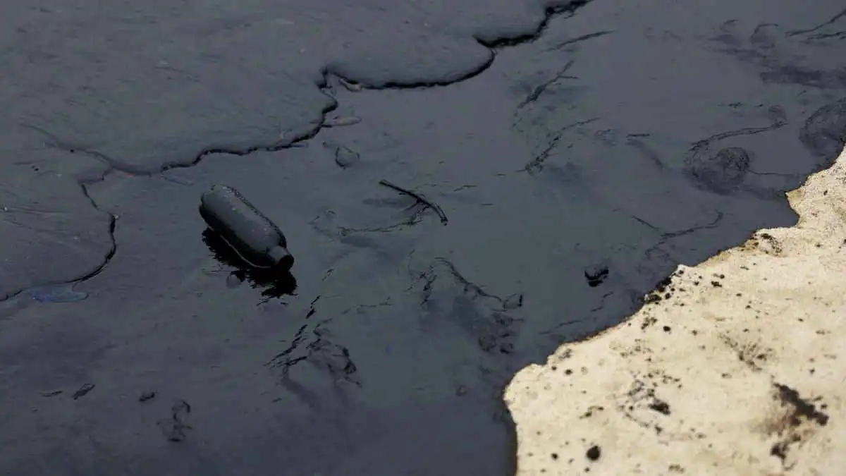 بقعة النفط على شاطئ تانجونج في سنتوسا - سنغافورة 15 يونيو 2024